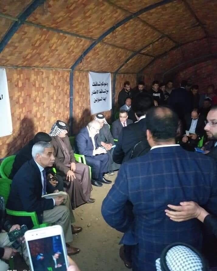 وتظهر صور  لرئيس الوزراء، عادل عبد المهدي، داخل أحد خيم اعتصام أهالي منطقة بوب الشام، شمال شرقي بغداد، المطالبين منذ اكثر من يومين بتحسين الخدمات الاساسية في مناطقهم.