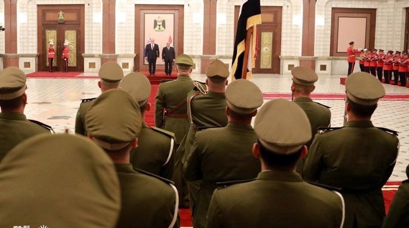 وأظهرت صورة اصطفاف قوات من الحشد الشعبي، والبيشمركة خلال مراسم استقبال موريسون من قبل رئيس الوزراء عادل عبد المهدي.