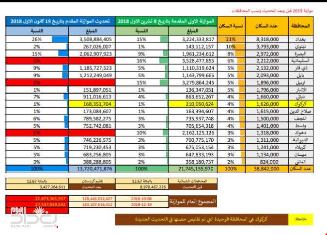 جدول.. حصة المحافظات بموازنة 2019 بعد تعديلها من قبل الحكومة