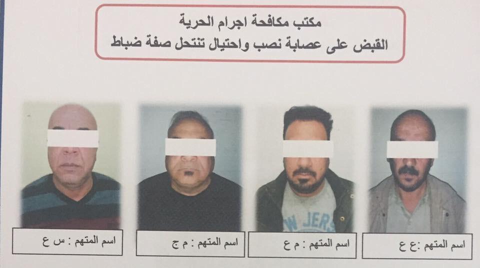 وقالت المديرية في بيان، ان "معلومات توفرت لدى مكتب مكافحة اجرام الحرية بوجود عصابة تنتحل صفة ضباط ولجنة مشتريات، وعلى الفور تم تشكيل فريق عمل وبعد جمع المعلومات والتحري من قبل المصادر السرية تم القاء القبض عليهم وبالجرم المشهود".