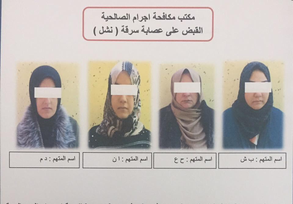 وقالت المديرية في بيان ان "معلومات توفرت الى مكتب مكافحة اجرام الصالحية بوجود سرقات حقائب واجهزة موبايل داخل متنزه الزوراء، وعلى الفور تم تشكيل فريق عمل وبعد جمع المعلومات والتحري من المصادر السرية ومتابعة كامرات المراقبة تم القاء القبض على (٤) متهمات".