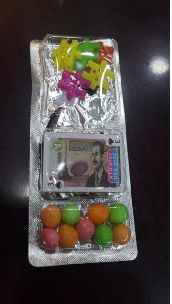 وقال المصدر ان 'مفارز جهاز الامن الوطني ذي قار القت القبض على شخصين يقومون بالترويج لرئيس النظام السابق عن طريق ادخال لعب اطفال وكميات كبيرة من الشكولا الى قضاء سوق الشيوخ'.