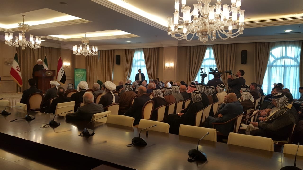 وقال الرئيس الايراني خلال لقائه عددا من شيوخ العشائر ورؤساء المؤسسات الاعلامية صباح اليوم في دار ضيافة رئاسة الوزراء ” ان وقوفنا مع الشعبين هو التزام اخلاقي تفرضه علينا الاخوة في الدين والجيرة وقيم الدين الاسلامي الحنيف”.