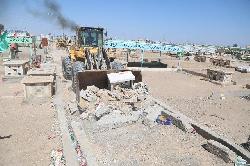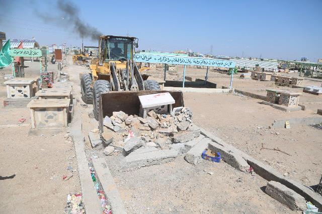وقال مكتب محافظ النجف لؤي الياسري في بيان إن الاخير "اشرف على إزالة تجاوزات شوارع المقبرة ورفع القبور الوهمية".