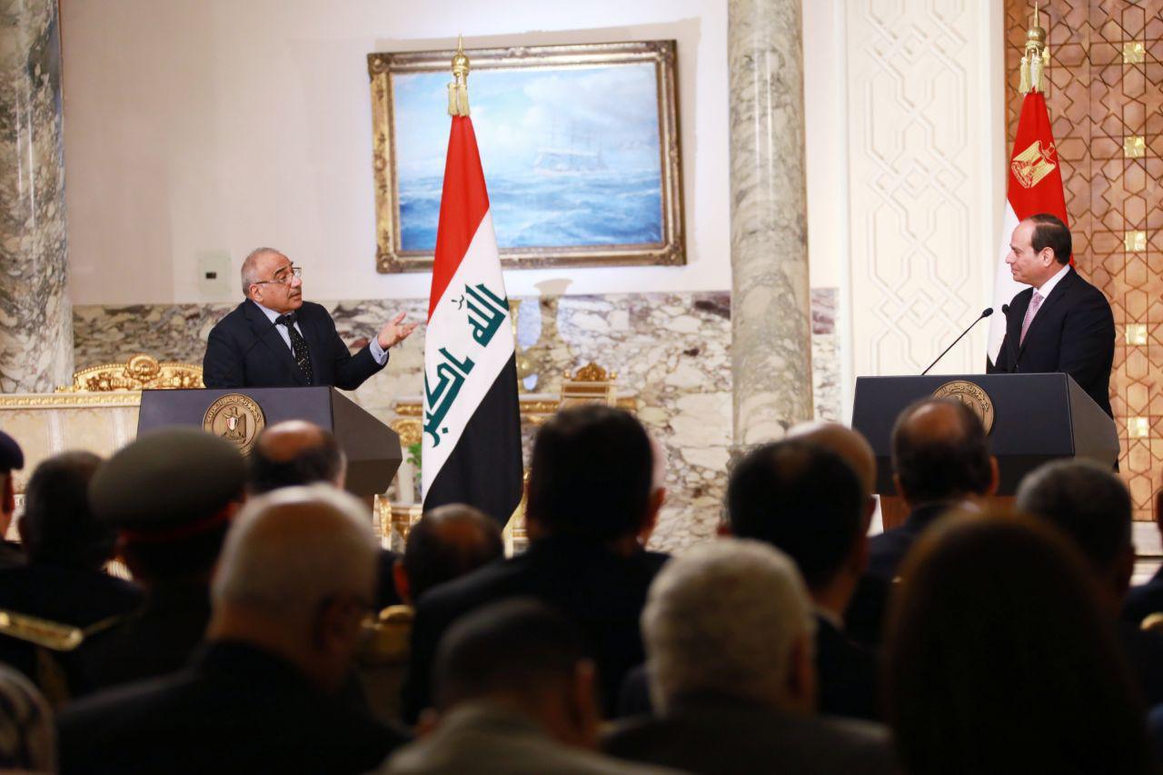 وقال عبد المهدي خلال مؤتمر صحافي مشترك مع السيسي في القاهرة، إن "زيارتي الاولى للخارج الى مصر لها دلالة وننتظر زيارة الرئيس السيسي الى العراق".