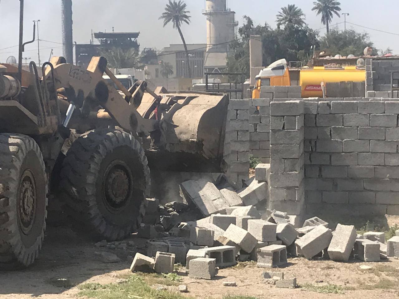 وقالت الأمانة في بيان إنه تمت "ازالة خمسة دور سكنية شيدت تجاوزاً على ارض حكومية جنوب شرق بغداد".