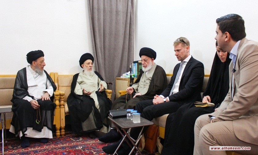 استقبل سماحة المرجع الديني الكبير السيد محمد سعيد الحكيم (مد ظله)، سفير مملكة السويد بمنظمة المؤتمر الاسلامي وحوار الأديان، يواكيم بير جستروم،