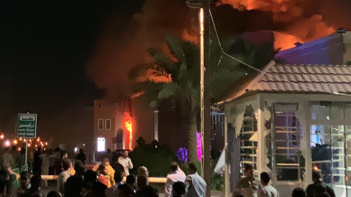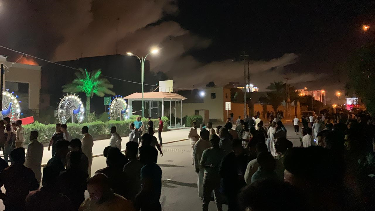 اقدم عدد من الاشخاص على حرق مول البشير قرب ساحة الصدرين في النجف.