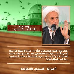 مشيرا الى ان التطبيع مع الصهاينة لاي سبب من الاسباب لا يمكن الا ان يكون تطبيعا مع كل المحرمات التي نهانا الله جل وعلا عنها، وتدنيسا لكل مقدساتنا، وان مهمة مجاهدتهم وتخذيلهم ومجابهتهم لا تتوقف عند الفلسطينيين فحسب بل هي مسؤولية الجميع لاسيما شيعة اهل البيت عليهم السلام
