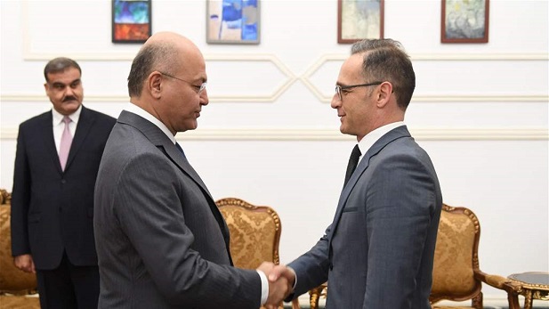 وقال المكتب الاعلامي لرئاسة الجمهورية في بيان إن "رئيس الجمهورية برهم صالح استقبل، اليوم، في قصر السلام ببغداد، وزير الخارجية الالماني هايكو ماس والوفد المرافق له".