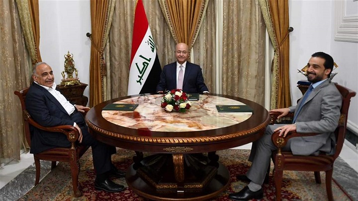 وقالت رئاسة الجمهورية في بيان إن "الرئاسات الثلاث عقدت، مساء اليوم، في قصر السلام ببغداد، اجتماعاً بحضور رئيس الجمهورية برهم صالح ورئيس الوزراء عادل عبد المهدي ورئيس مجلس النواب محمد الحلبوسي"،