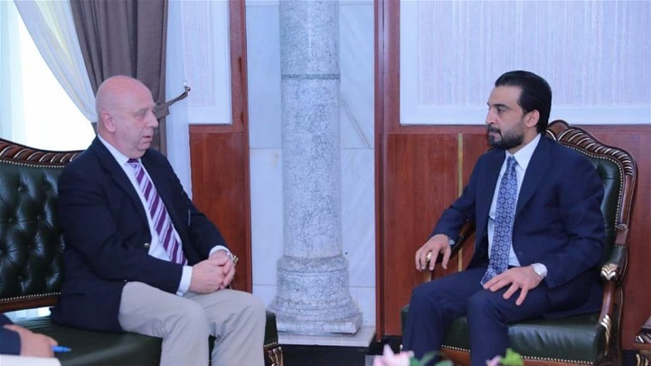 ناقش رئيس مجلس النواب محمد الحلبوسي، الأحد، مع القائم بأعمال السفارة البريطانية ملف إكمال الكابينة الوزارية.
