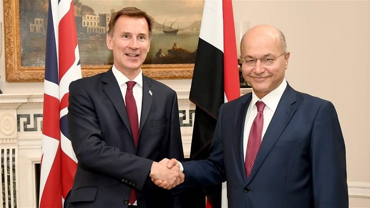 من جانبه، جدد هانت دعم بلاده للعراق على مختلف الصعد، وسعيها لتوثيق عُرى الصداقة، مشيداً بدوره المحوري ازاء الازمات في المنطقة.