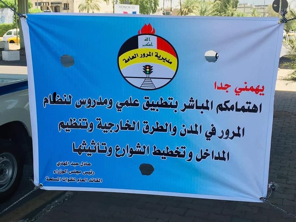 وبحسب اعلام مديرية المرور العامة فأن "رسالة عبد المهدي تمت طباعتها على بوستات وستوزع في شوارع بغداد".