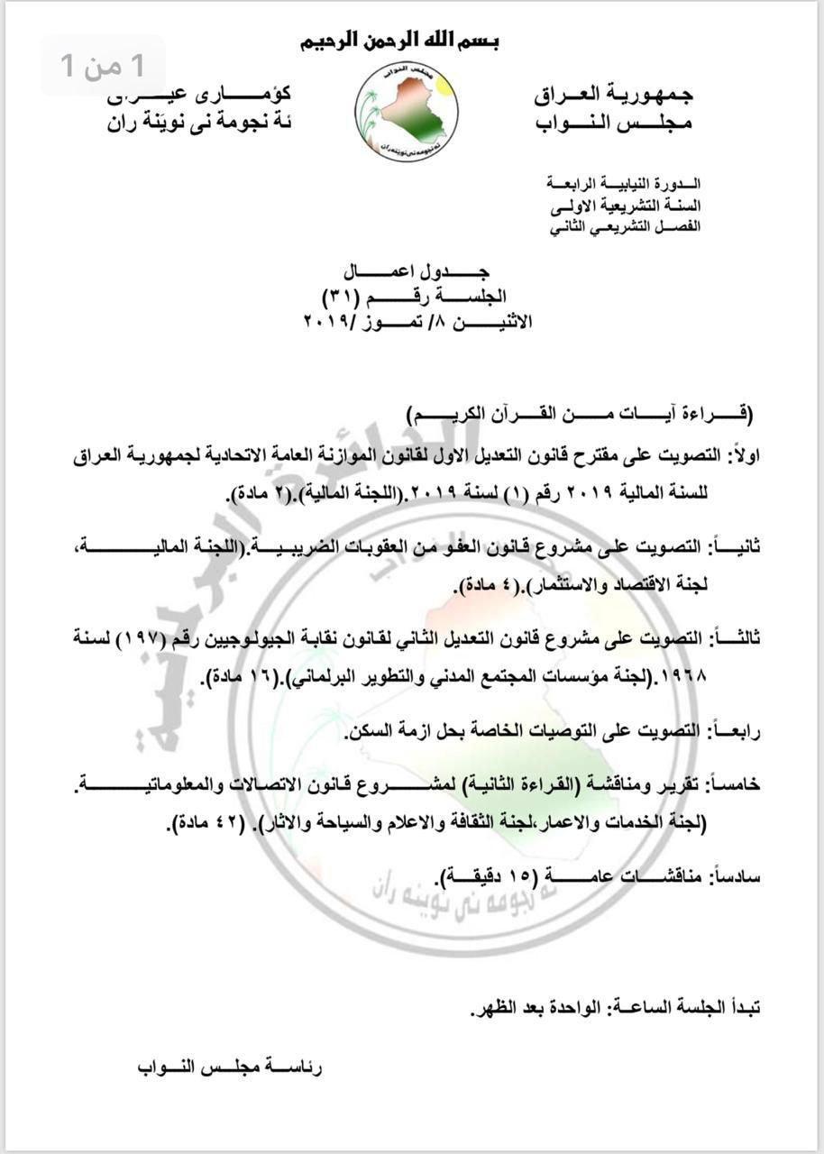 هذا ما سيناقشه البرلمان في جلسة الاثنين