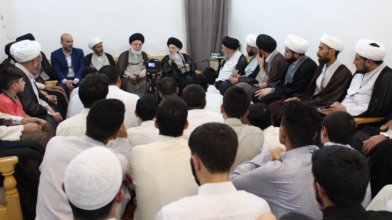 استقبل سماحة المرجع الديني الكبير السيد محمد سعيد الحكيم (مدّ ظله)، طلبة العلوم الدينية الدراسين في مؤسسة آية الله العظمى السيد محسن الحكيم (قدس سره) للدراسة الحوزوية، وقد أكد (مدّ ظله) على ضرورة الدراسة بجد لإتقان المعلومة الدينية والحفاظ على ارتباطها بمصدرها التشريعي، وأهمية زرع الثقة المتبادلة بين المبلغ وعموم الناس بحسن المخالطة والمعاشرة والاخلاص لله تعالى، وإشعار المؤمنين بالاهتمام والرعاية والعناية بهم، لكي تكون الإرشادات مؤثرة، ولبيان رسالة الله تعالى بشكل ميسر وواضح، وحسب مدارك الناس المختلفة.