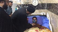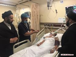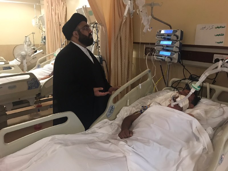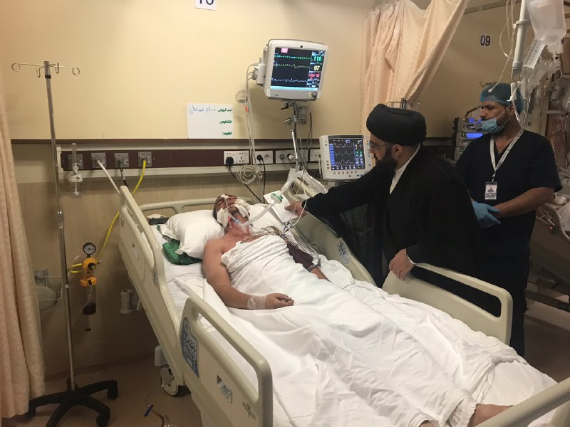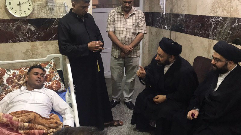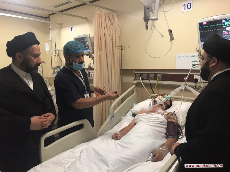 هذا وضم الوفد السيد أمجد العذاري والسيد حسن الحكيم، حيث أبلغوا الجرحى سلام ودعاء سماحة المرجع الكبير السيد الحكيم (مد ظله)، حيث ثمن الجرحى وذويهم زيارة وتفقد المرجعية الدينية لأبنائها وخدام الحسين (عليه السلام) من الجرحى والتواصل من أجل الاطمئنان على صحتهم، وعاهدوا بأنهم باقون ومستمرون بتعظيم الشعائر الحسينية ولاتوقفهم حوادث ولا أي أسباب أخرى سعياً لرضا الله تعالى ورسوله وأهل بيته عليهم السلام.