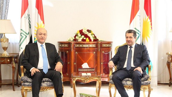 وقالت رئاسة الاقليم في بيان، إن "رئيس حكومة إقليم كردستان مسرور بارزاني استقبل في مكتبه بأربيل، اليوم، رئيس جمهورية العراق برهم صالح"،