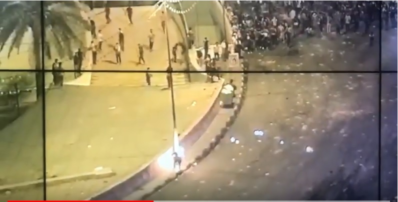 وسربت المديرية شريط الفيديو، الذي يبدو أنه صور في كاميرات المراقبة في ساحة التحرير، وسط العاصمة بغداد، حيث جرت تظاهرات يوم أمس، وقوبلت باطلاق الغاز المسيل للدموع، والرصاص الحي، بغرض تفريقها.