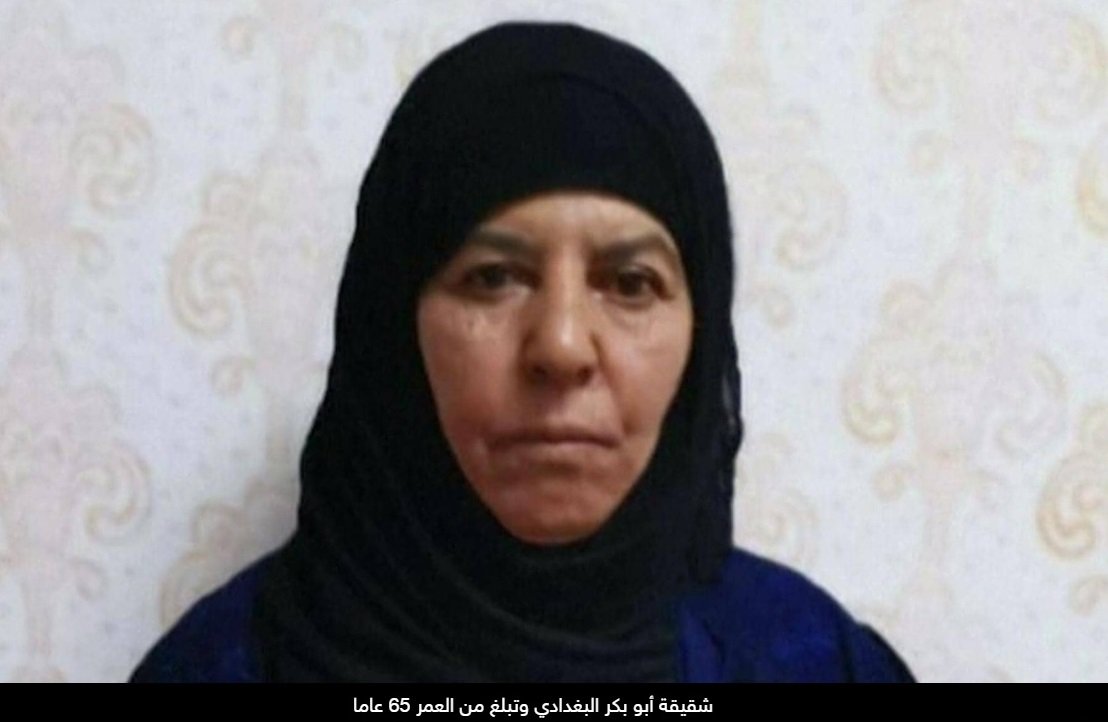 وأشار المسؤول إلى أن "أخت البغدادي، البالغة من العمر 65 عاما، اعتقلت في حملة مداهمة قرب مدينة أعزاز القريبة من الحدود، وتسيطر عليها تركيا، وكان بصحبتها أيضا عند اعتقالها خمسة من أبنائها".