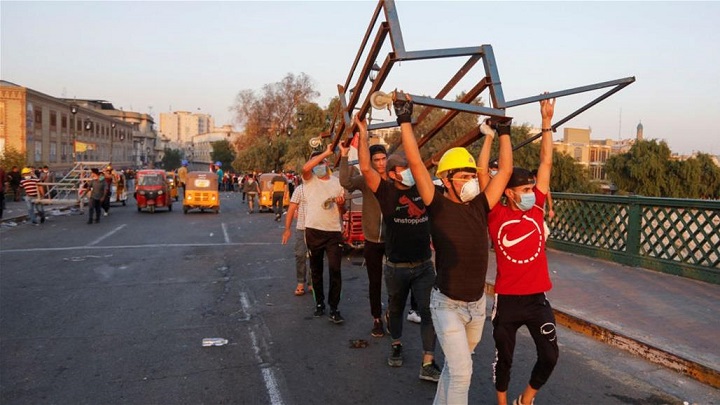 وقال تحالف الفتح في بيان إنه في الوقت الذي وقفنا فيه الى جانب جماهير شعبنا في مطالبهم المشروعة، نقف مع قرار حشودهم اليومية في ساحات الحرية والتحرير، ونطالبهم بوقفة مسؤولة لاستنكار عمليات غلق الطرق العامة والجسور وتعطيل المصالح الوطنية والمدارس والمعاهد وتخريب الاقتصاد الوطني بإيقاف العمل في الموانئ والمنافذ الحدودية.