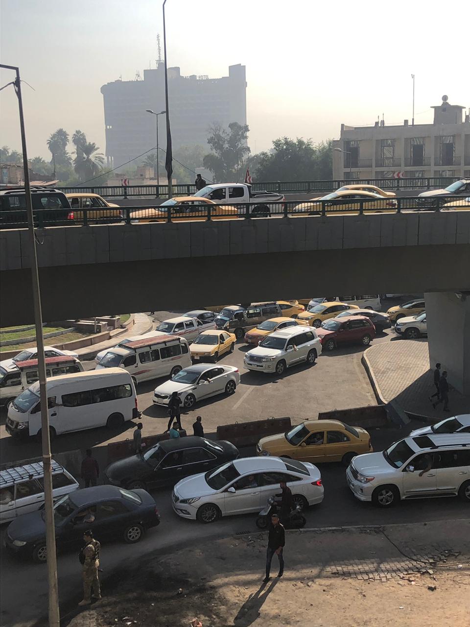 واضاف ان "الوضع في ساحة التحرير جيد وتمركز المتظاهرين عند الخط الاول لجسر الجمهورية واسفل الجسر مع توافد المواطنين الى الساحة"، مشيرا الى ان "الوضع قرب الجسر وبالمطعم التركي جيد لغاية الان".
