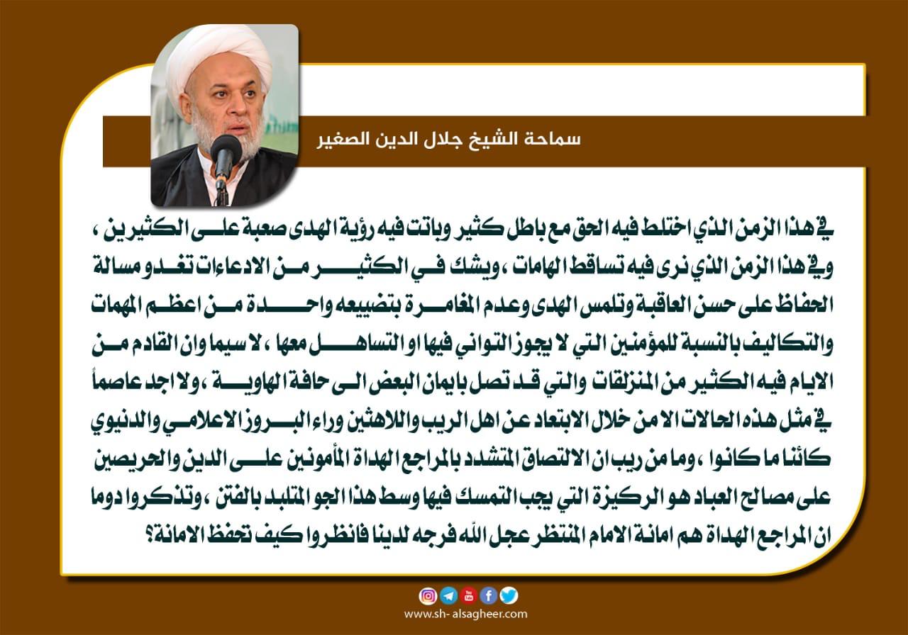 الشيخ جلال الدين الصغير يدعو المؤمنين الى الصبر والالتصاق بالمرجعية المباركة