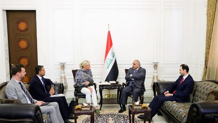 بحث رئيس الوزراء عادل عبدالمهدي والممثلة الخاصة للأمين العام للأمم المتحدة جنين بلاسخارت، الاثنين، جهود الحكومة لتلبية مطالب المتظاهرين وفي مقدمتها قانون الانتخابات.