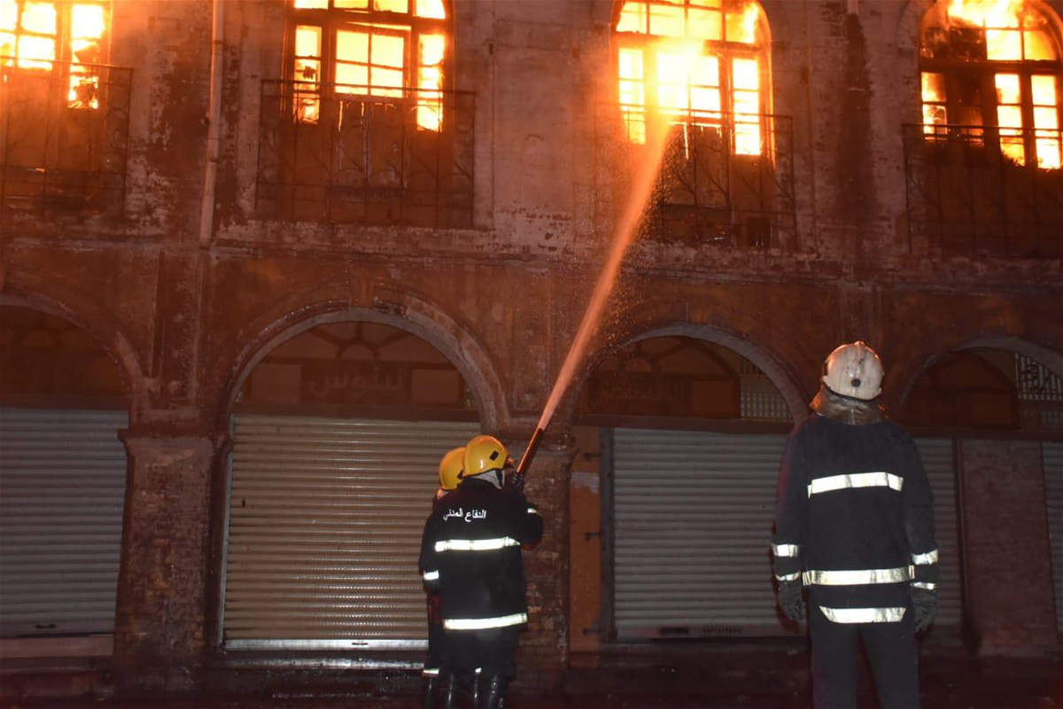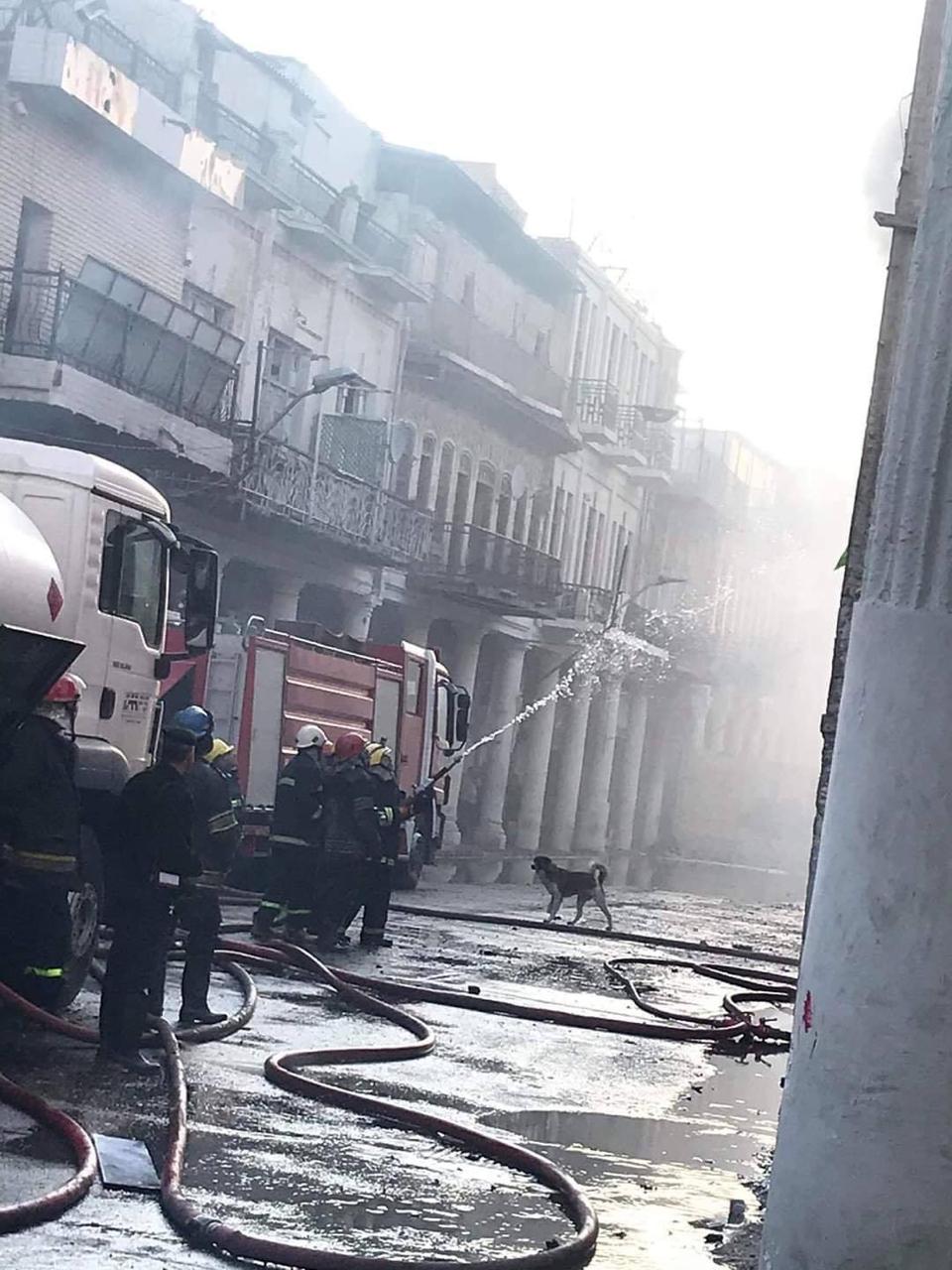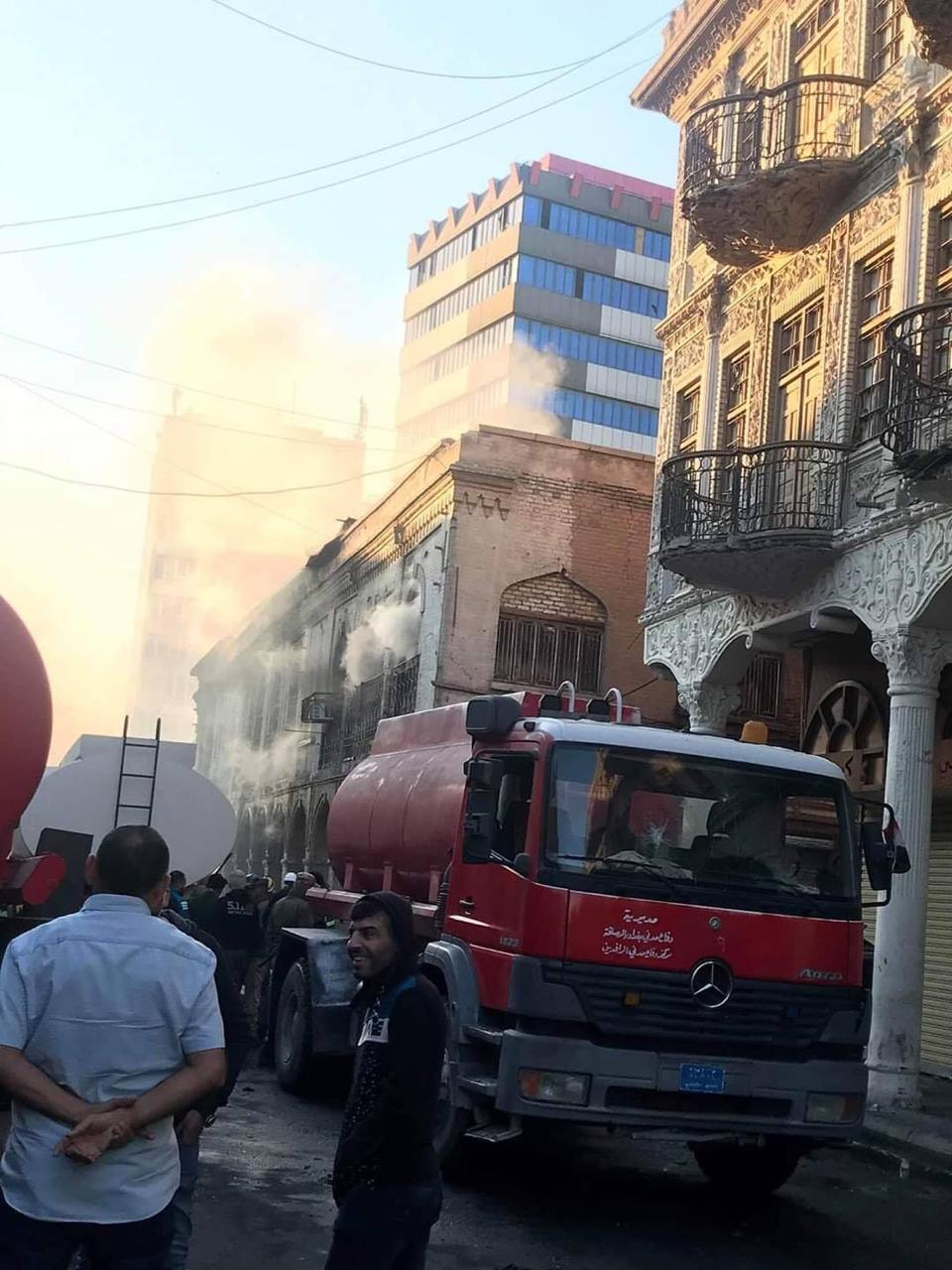 بالصور الحرائق التي اندلعت والتي قام بها مشاغبون مجرمون من المتظاهرين في شارع الرشيد