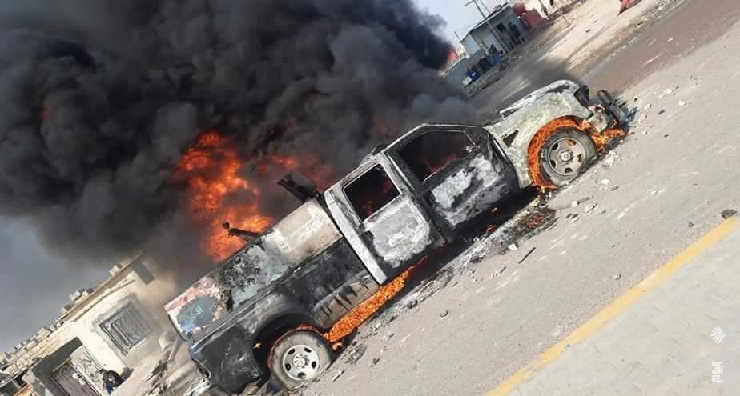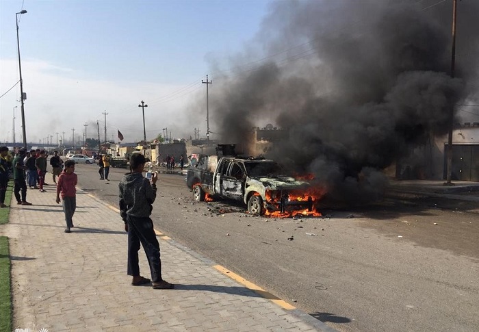 افاد مصدر امني في محافظة البصرة اليوم ان متظاهرين يدعون انهم سلميون احرقوا سيارة لقوات الشرطة بالمحافظة واوضح المصدر ان مجموعة من المشاغبين هاجموا العجلة التي كانت متوقفة واضرموا النيران فيها .
