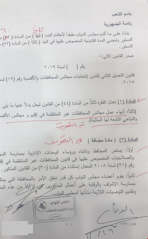 النص الكامل لقانون التعديل الثاني لقانون مجالس المحافظات والأقضية رقم (12) لسنة 2018، الذي صوت عليه البرلمان اليوم.