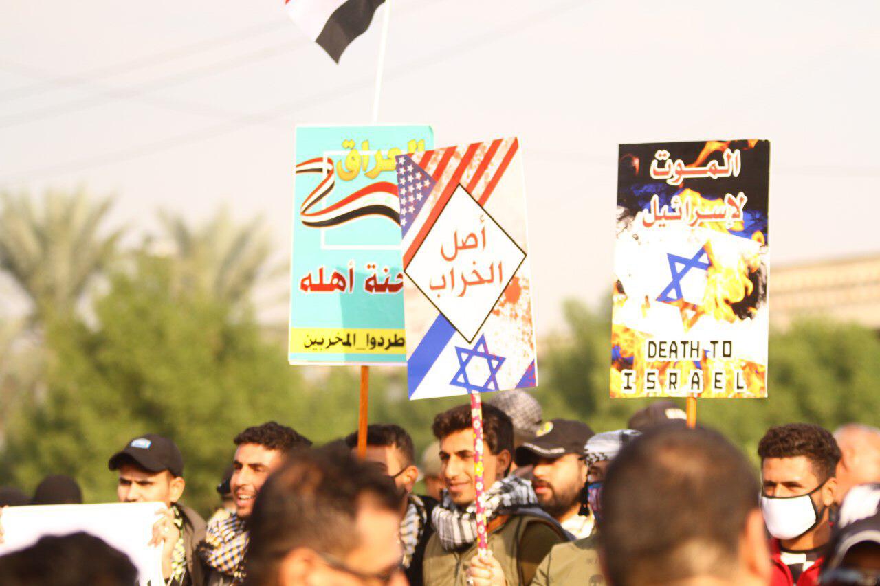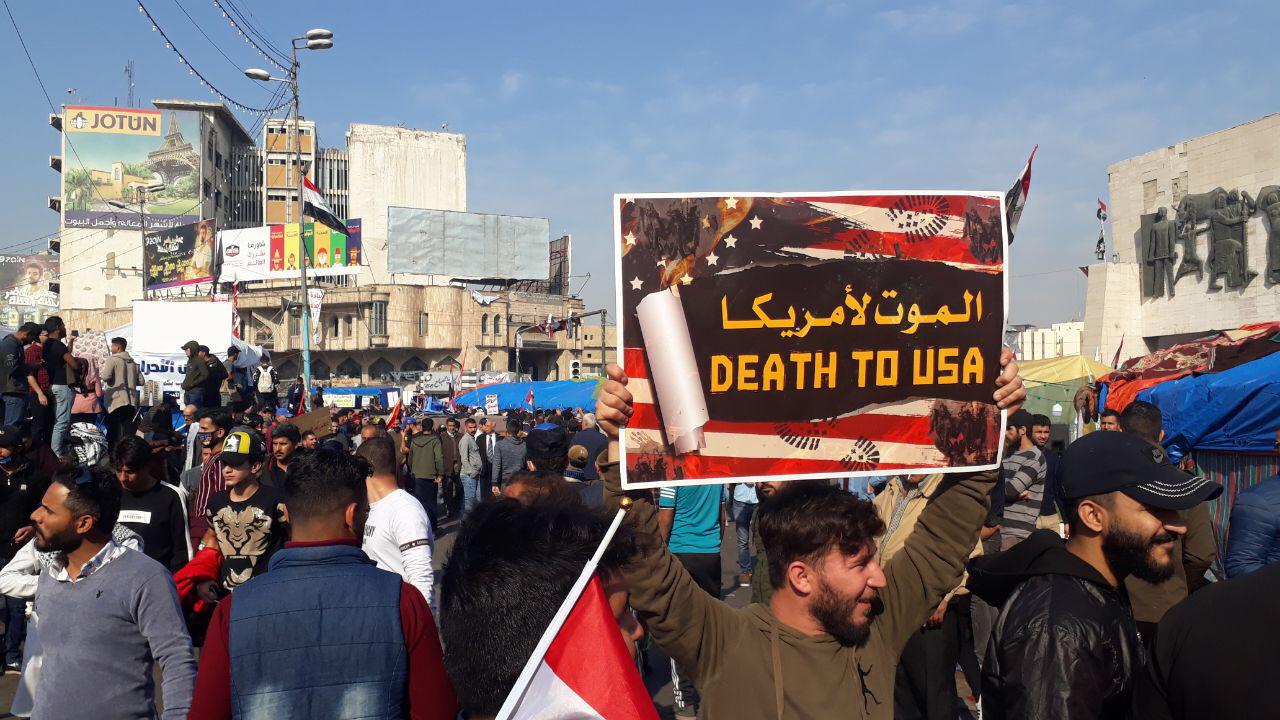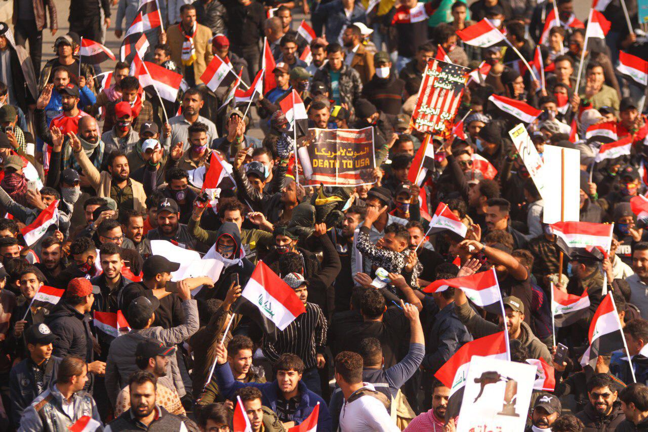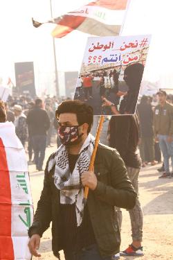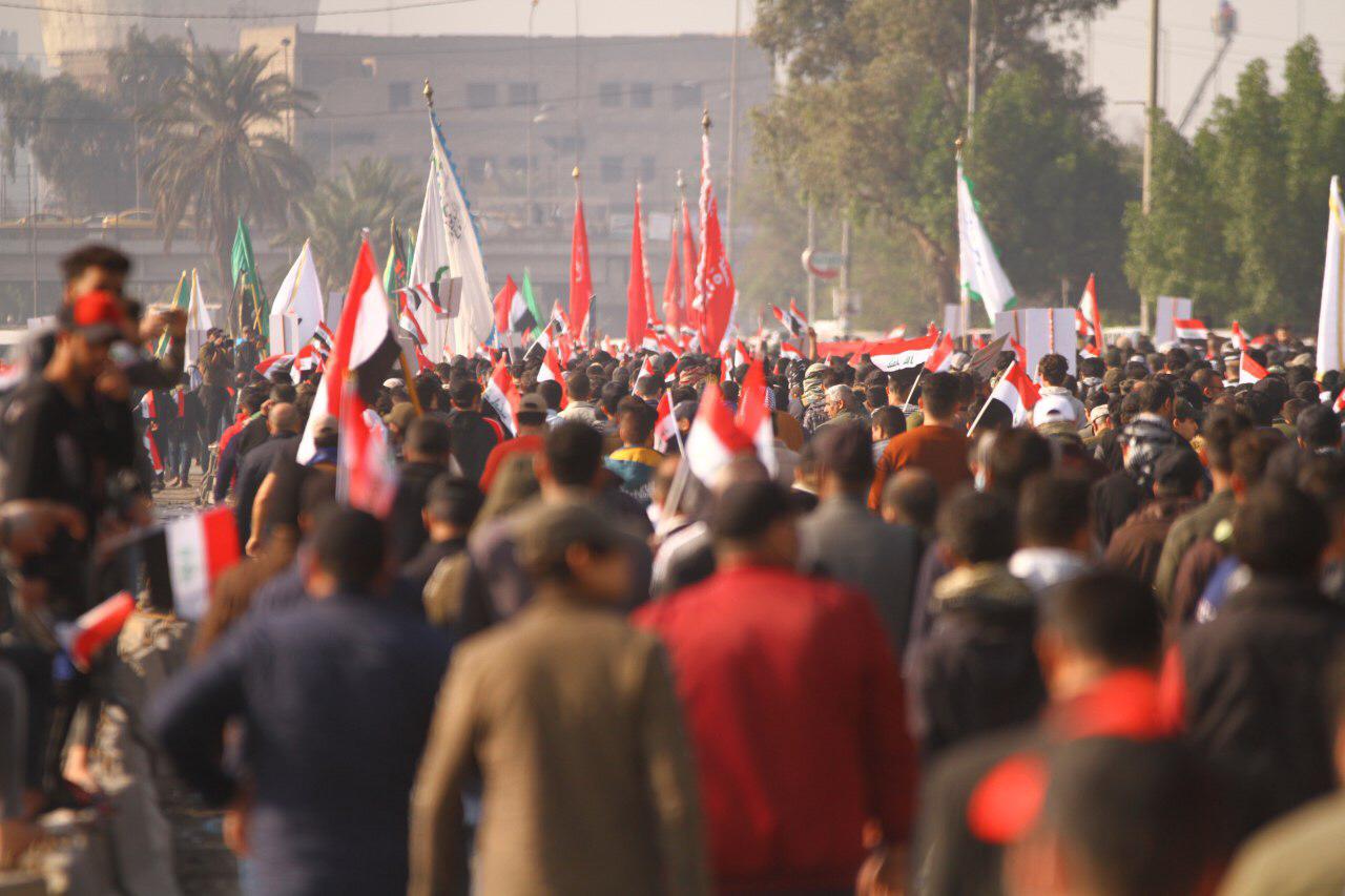 انطلقت صباح هذا اليوم تظاهرة حاشدة اتجهت الى ساحة التحرير وقد حمل المتظاهرون لافتات تدعو الى السلمية والى طرد المخربين والمجرمين وتستنكر التدخلات الامريكية والسعودية المعادية للعراق