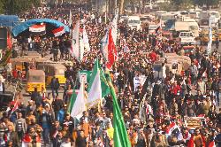 واوضح مصدر صحفي ان أكثر من 10 آلاف متظاهر دخلوا صباح اليوم ساحة التحرير وهم يهتفون للامام المفدى السيد علي السيستاني وضد أمريكا وآل سعود والبعث..