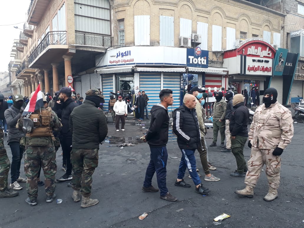 تم نشر صور تظهر انتشار افراد من الجيش العراقي بين ساحتي السنك والاحرار وسط بغداد صباح اليوم السبت 7 كانون الاول 2019.