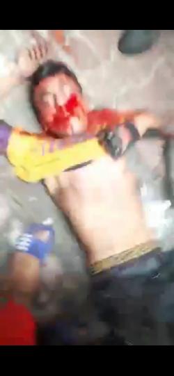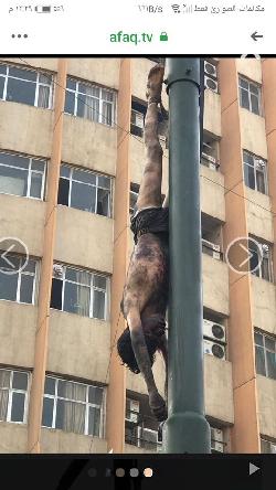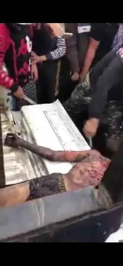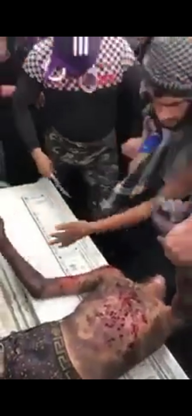 ما هذه الدناءة التي تجعل المئات يركلون ويضربون جثة هامدة الا لعنة الله عليكم وعلى من علمكم هذا الفعل الشنيع
