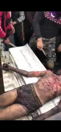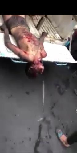 ما ذنب هذا الطفل ان تمثل جثته بهذا الشكل المريع هل لانه دافع عن عرضه عندما حاول بعض الساقطين التحرش باهله لفظيا ودعاهم بكل ادب الى الابتعاد عن منزله ولكنهم ابوا ذلك وقاموا بالتعدي عليه وبعدها قام احد المندسين برمي العاب نارية على المتجمهرين وادعى بعدها ان هذا الطفل هو الذي اطلق عليهم الرصاص