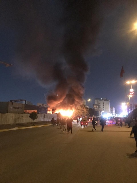 قامت مجموعة من المتظاهرين المخربين مساء الاثنين، على إحراق مخيّم يعود لمكتب اية الله السيد محمد تقي المدرسي وسط كربلاء.