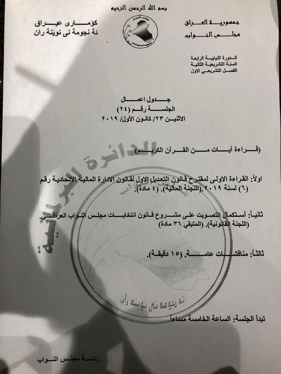 البرلمان ينشر جدول اعمال جلسة اليوم
