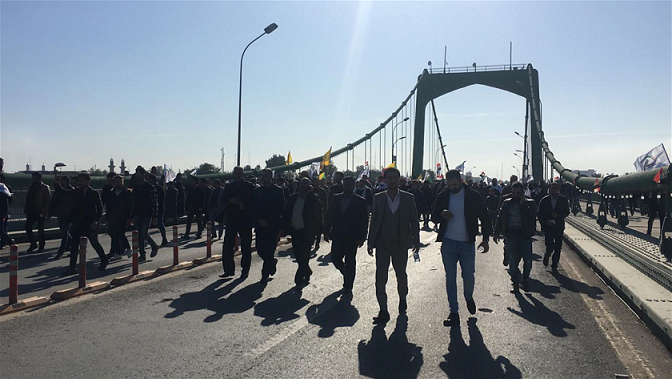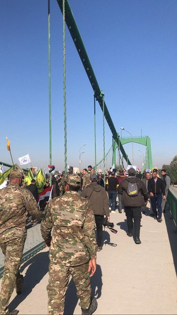 وقال المصدر ان "مشيعي شهداء الحشد الشعبي الذين استشهدوا بالقصف الامريكي على مقر للحشد على الحدود العراقية السورية غرب الانبار، دخلوا الى المنطقة الخضراء وسط بغداد".