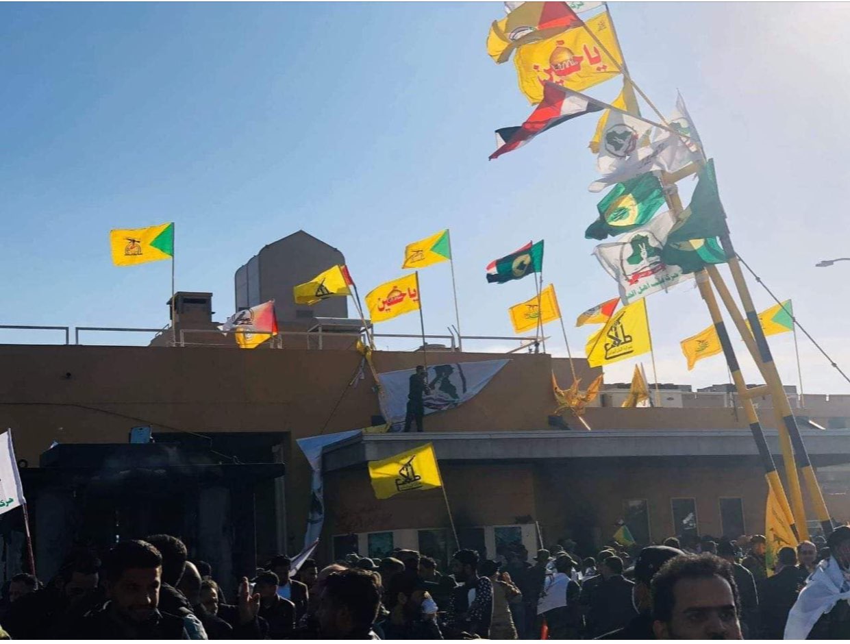 راية يا حسين ترفع على السفارة الامريكية في بغداد ( صورة )