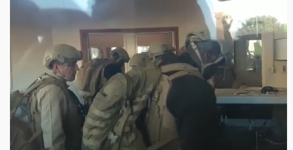 بالفيديو.. زجاج يفصل الأمريكان داخل سفارتهم في بغداد عن المحتجين من الحشد الشعبي