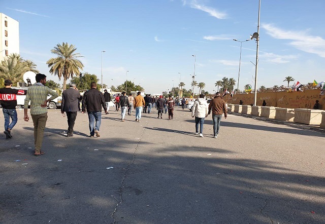 أفاد مصدر أمني، الاربعاء، بأن المعتصمين المنسحبين من امام السفارة الاميركية في المنطقة الخضراء بدأوا بنصب سرادقهم على ضفاف دجلة بالجهة المقابلة للسفارة.