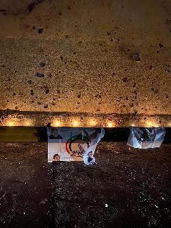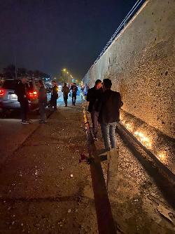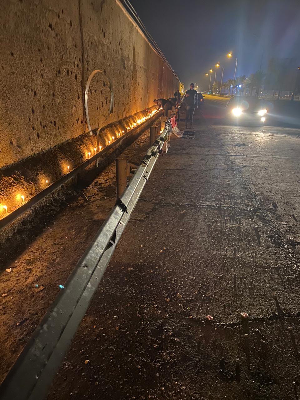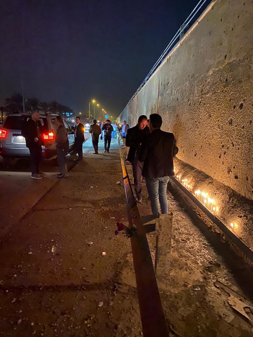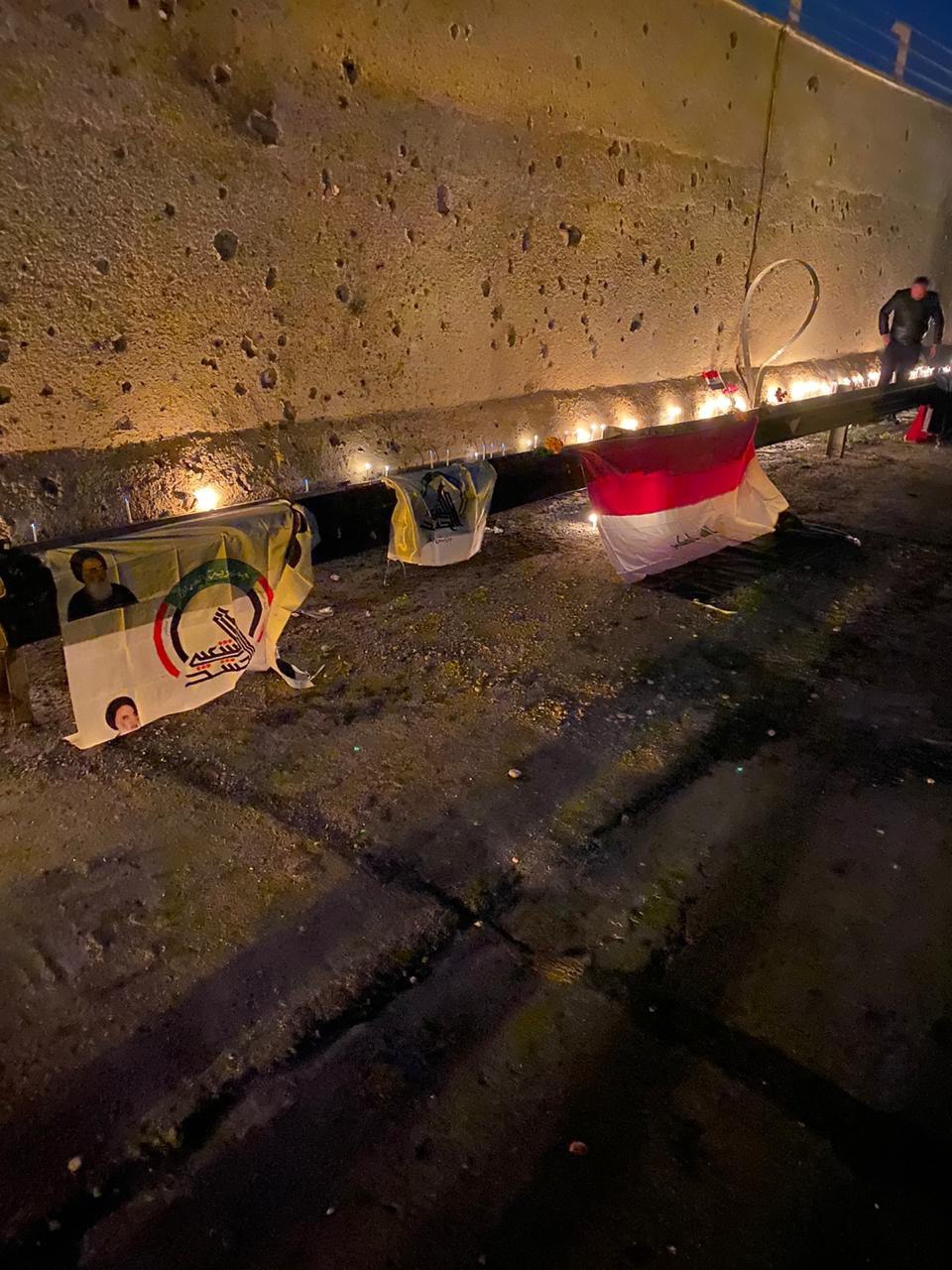 بالصور ايقاد الشموع في مكان استهداف الشهيد حاج قاسم والشهيد ابو مهدي المهندس
