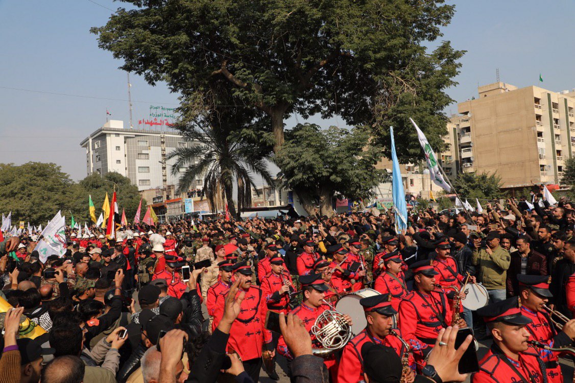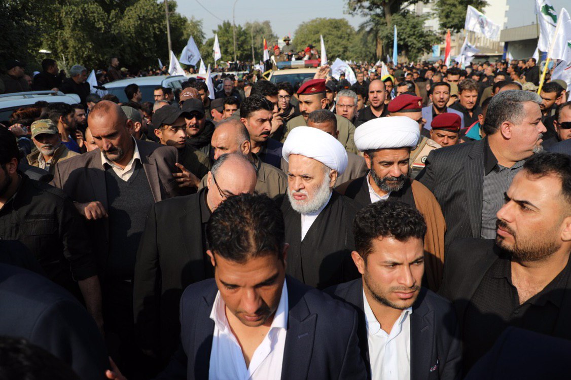 شارك امام جامع براثا الشيخ جلال الدين الصغير بتشييع الشهيد القائد ابو مهدي المهندس والشهيد القائد الحاج قاسم سليماني وبقية الشهداء الذين استشهدوا خلال الضرية الامريكية الاجرامية الجبانة الغادرة وقد انطلق التشييع المهيب من الجادرية