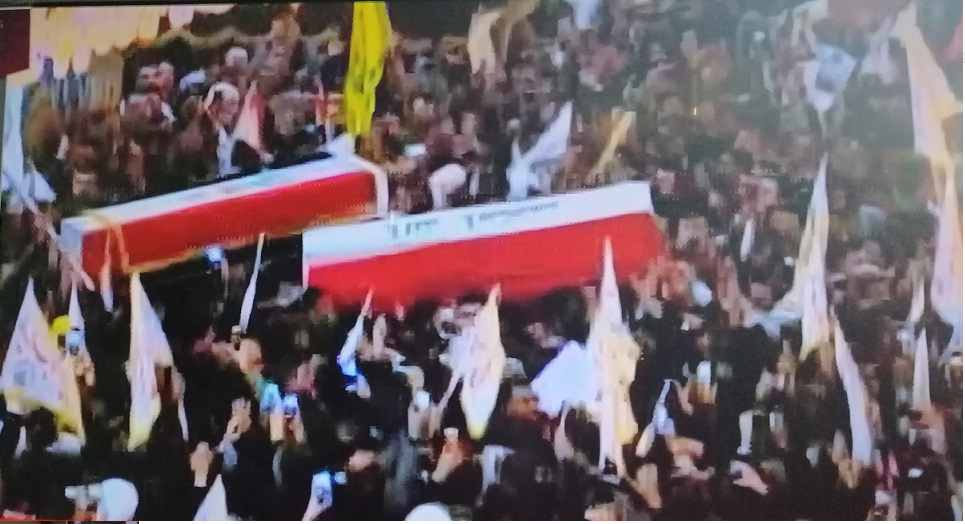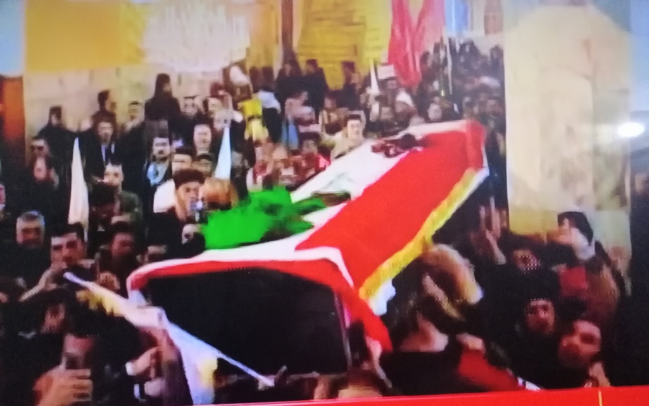 تقرير مصور للتشييع المهيب للشهيدين المجاهدين ابو مهدي المهندس وقاسم سليماني وبقية الشهداء الذين سقطوا بالضربة الامريكية الغادرة