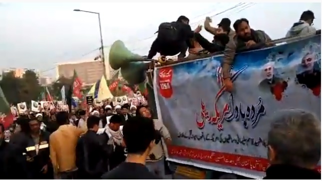 بالفيديو ..... الاف الباكستانيين يخرجون بمظاهرات تستنكر اغتيال القائد الشهيد قاسم سليماني ورفيقه القائد الشهيد ابو مهدي المهندس