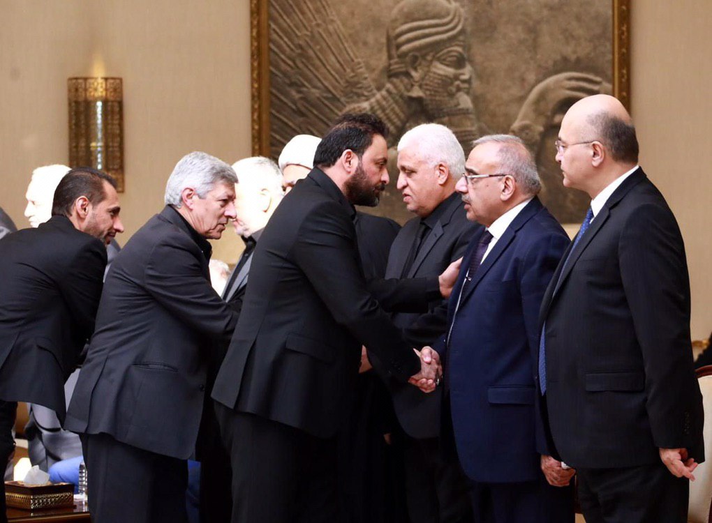 اقام رئيس الوزراء عادل عبد المهدي مجلسا للعزاء على ارواح القادة الشهداء الذين سقطوا جراء القصف الامريكي الجبان الغادر قرب مطار بغداد الدولي