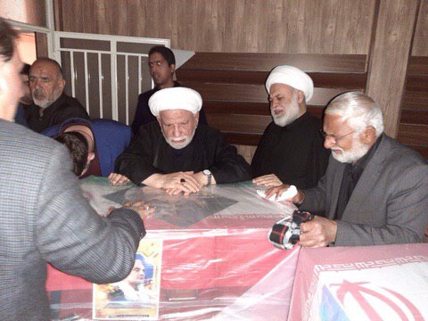 صورة محزنة الشيخ جلال الدين الصغير الى جانب جثمان الشهيد الحاج قاسم سليماني