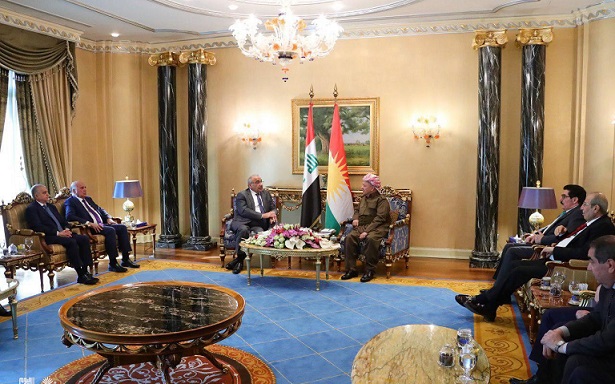 من جهته عبّر مسعود البارزاني عن ترحيبه العميق بالسيد رئيس مجلس الوزراء، وقال إننا "نقدر الصعوبات التي تواجهونها بحكمة، ونحن مع اي قرار يحفظ مصلحة واستقرار وأمن وسيادة العراق وتجنيبه المخاطر المستقبلية ، ومع أهمية ان يكون العراق نقطة سلام وفي منأى عن الصراعات وعدم التدخل في شؤونه الداخلية، وضرورة العمل المشترك ومعالجة كل الثغرات التي يمكن ان تستغلها داعش".
