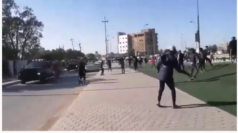 بالفيديو ، الاعتداء الاثم القوات الامنية قرب جامعة واسط من قبل جماعات الجوكر الامريكي اللقيطة